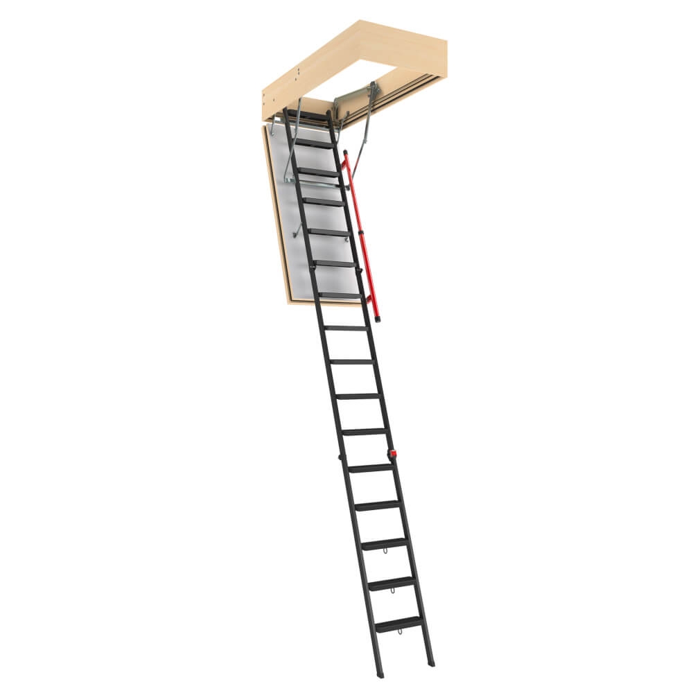De LMF 60 brandwerende zoldertrap is een driedelige opvouwbare trap met metalen ladder en brandwerend luik (EI1=60 min) van de nieuwste generatie. Het luik is vlamdichtheid en voorzien van thermische isolatie.